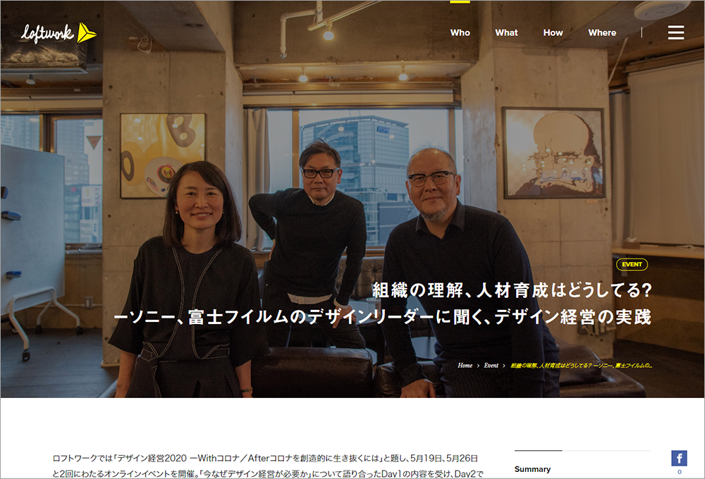 「ロフトワーク社」のデザイン経営オンラインイベントでセンター長が対談