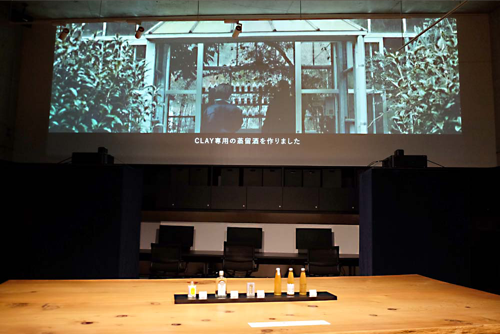 毎年秋に開催されるデザイン&アートフェスティバル「DESIGNART TOKYO」において、2021年10月29~31日の3日間限定で、小さな小さなBar「CLAY 10 minutes BAR」を、CLAYスタジオの地下にOPENしました。CLAYとmitosaya薬草園蒸留所のコラボレーションにより、今回のための特別なドリンクを提供。富士フイルムの写真フィルム製造の総本山である南足柄周辺で採れた新鮮な柑橘の湘南ゴールドをベースに、CLAYオリジナルの蒸留酒とソーダを作りました。