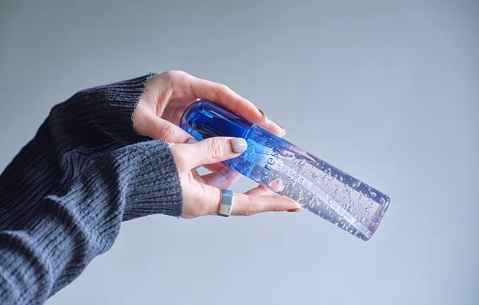 製品自体にも、ジェリー状の化粧液の気泡が容器の深いブルーのグラデーションと薄いピンクと相まって優しげでかわいらしい佇まいがありますね。